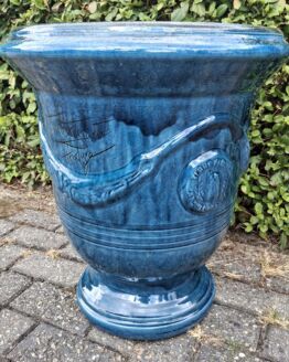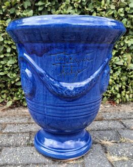 De originele geglazuurde anduze pot delta bleu Frankrijk 58 cm hoog.