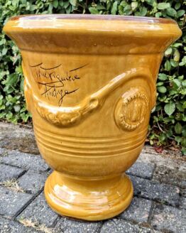 De originele geglazuurde anduze pot oker Frankrijk 47 cm hoog.