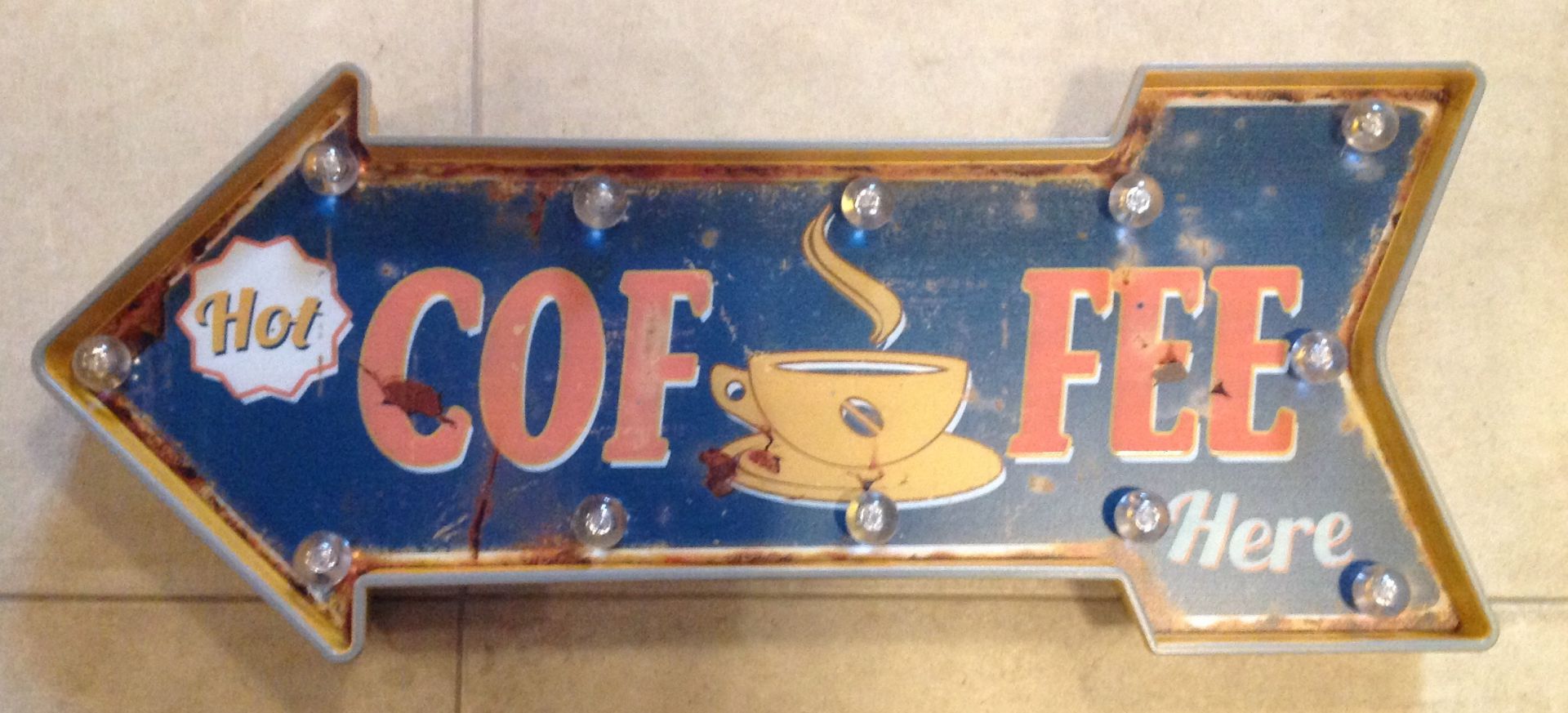 Hele leuke reclame bord cofee here met verlichting.