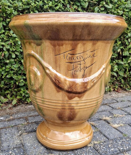 De originele geglazuurde anduze pot old yellow Frankrijk.