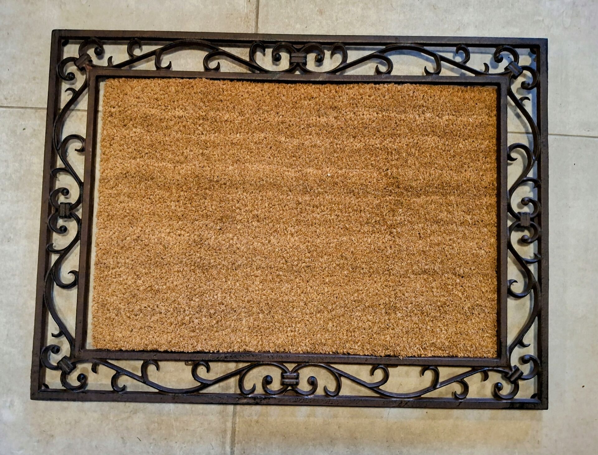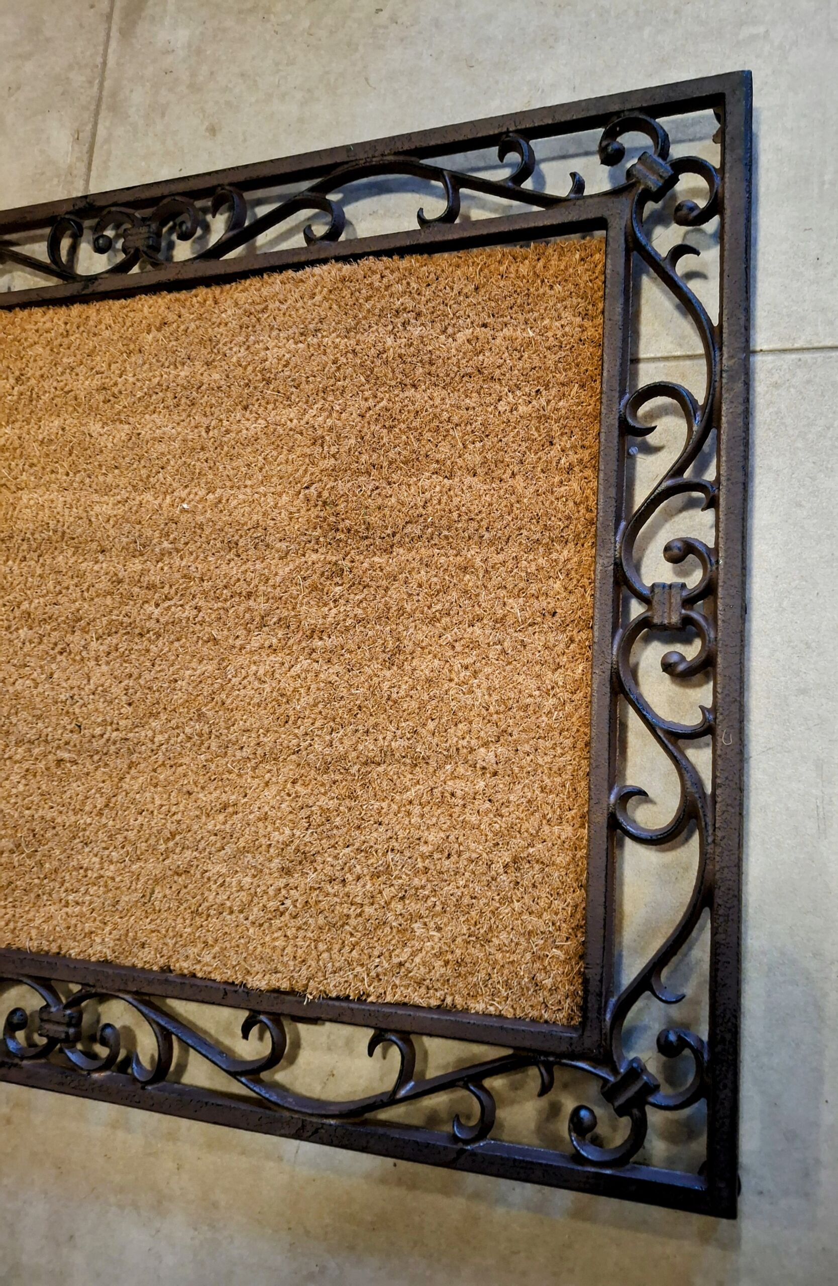 Gietijzeren deurmat met kokosmat. 74,5 cm bij 55 cm.