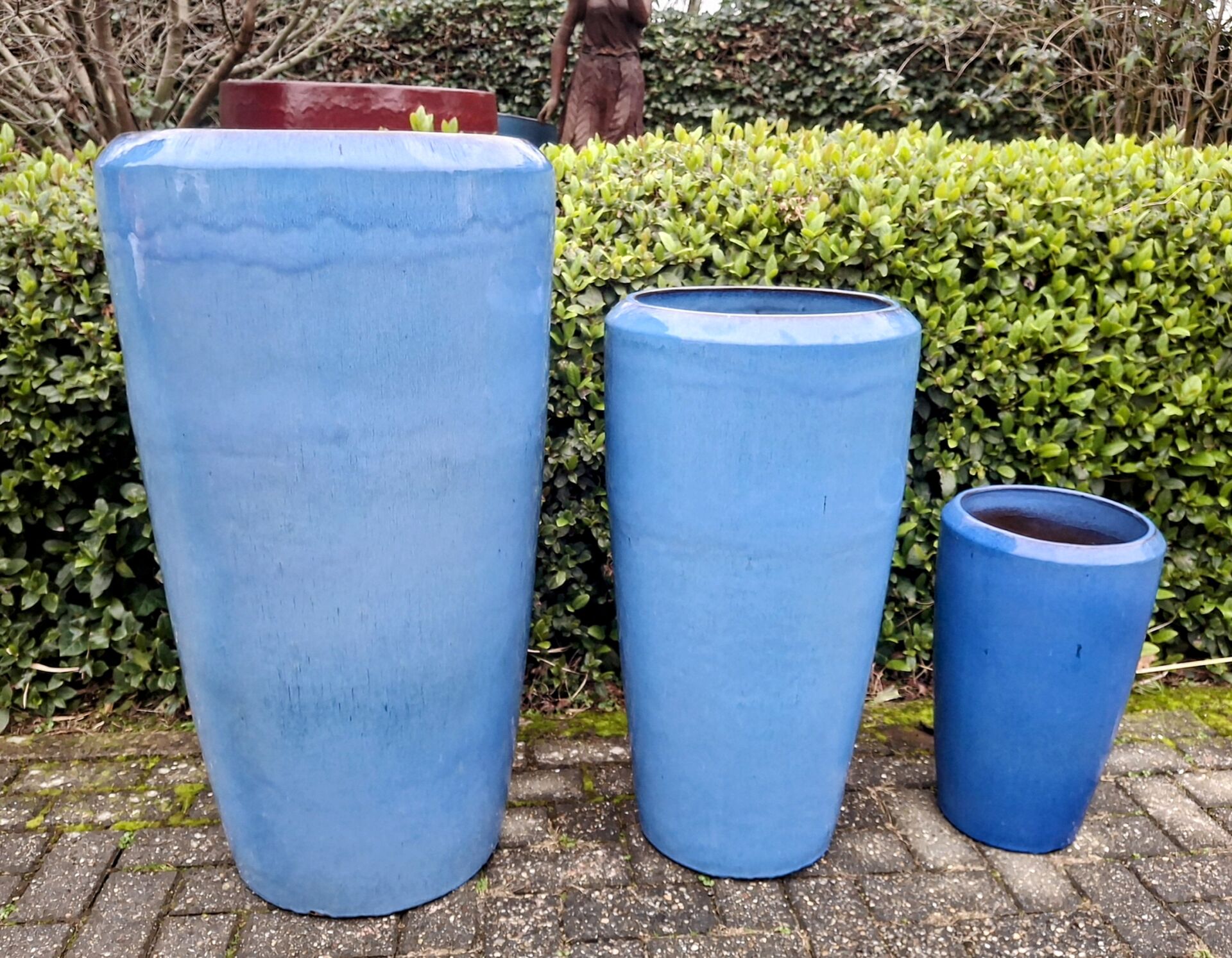 Geglazuurde pot hellas antic bleu 50 cm hoog.