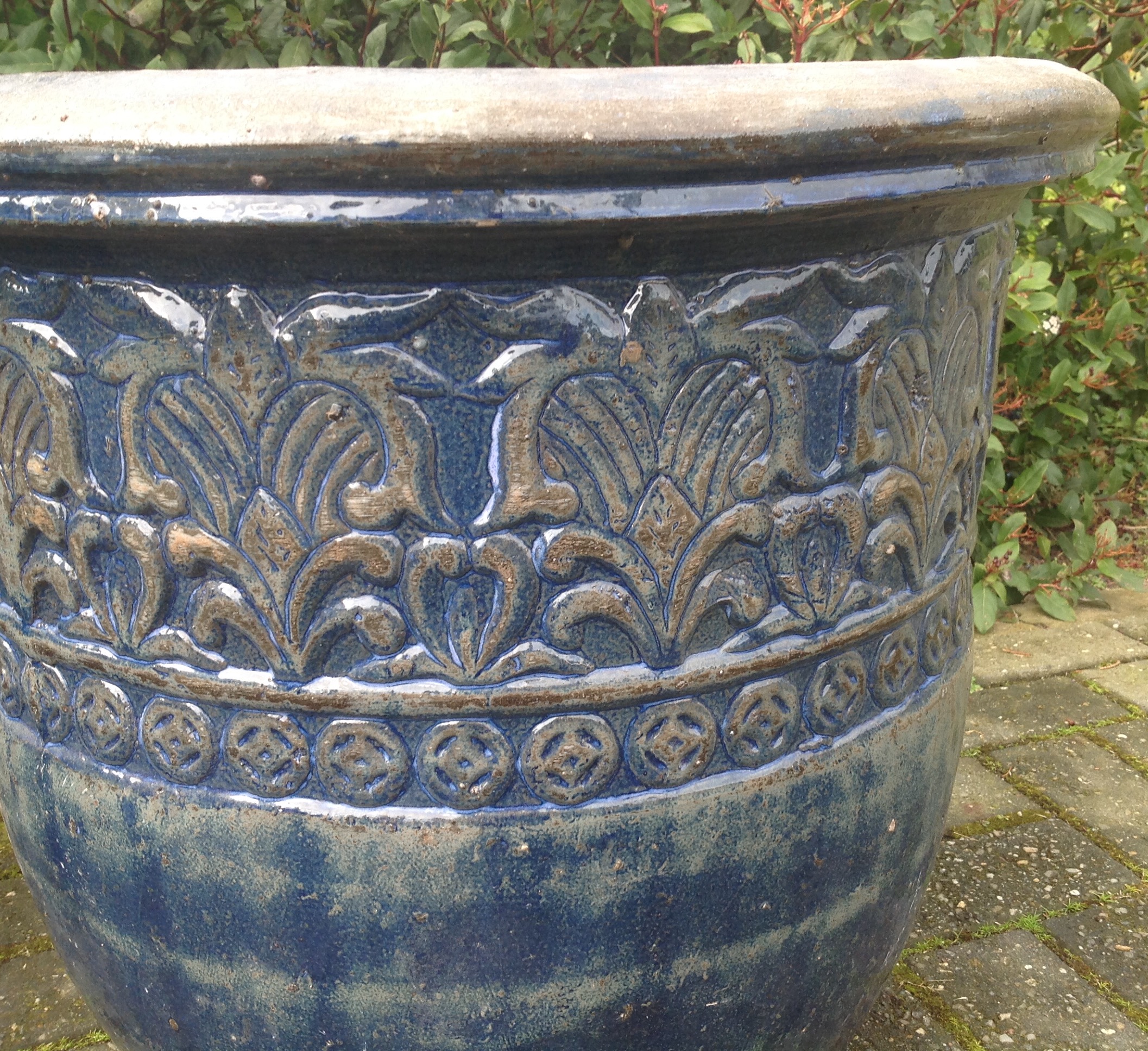 / Geglazuurde pot mendeo bleu hoog 34 cm.