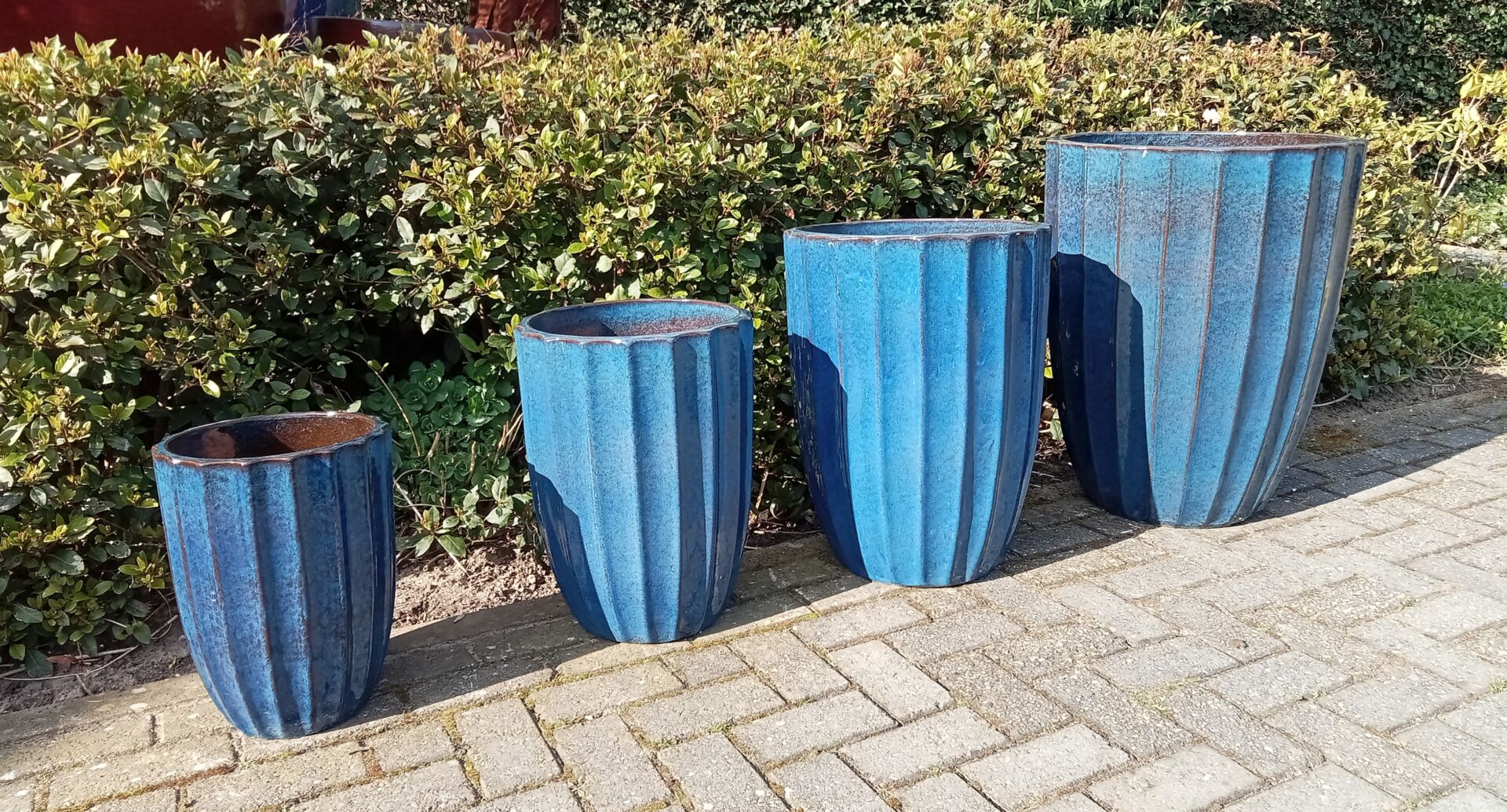 Geglazuurde pot tress bleu hoog 58 cm.