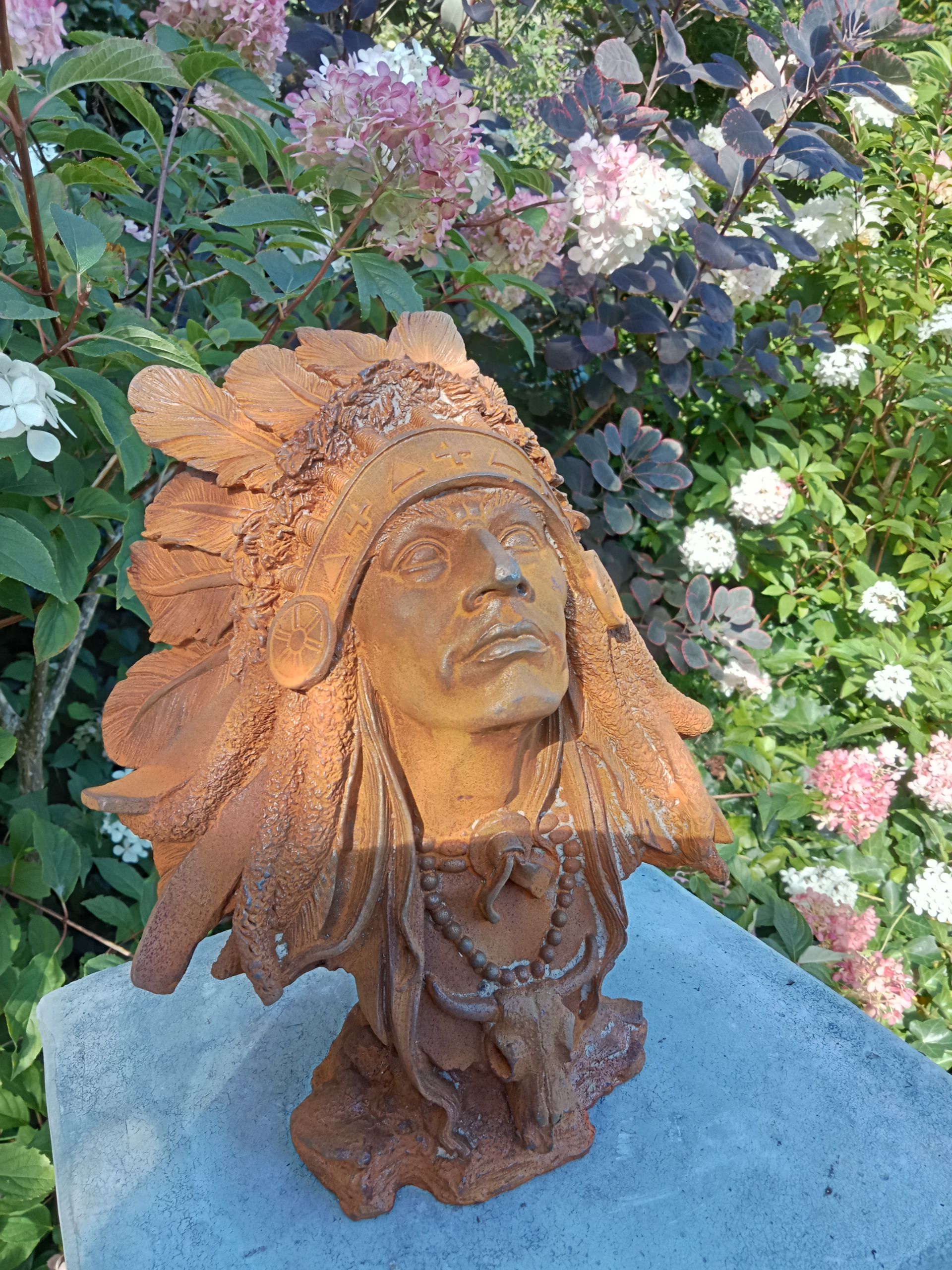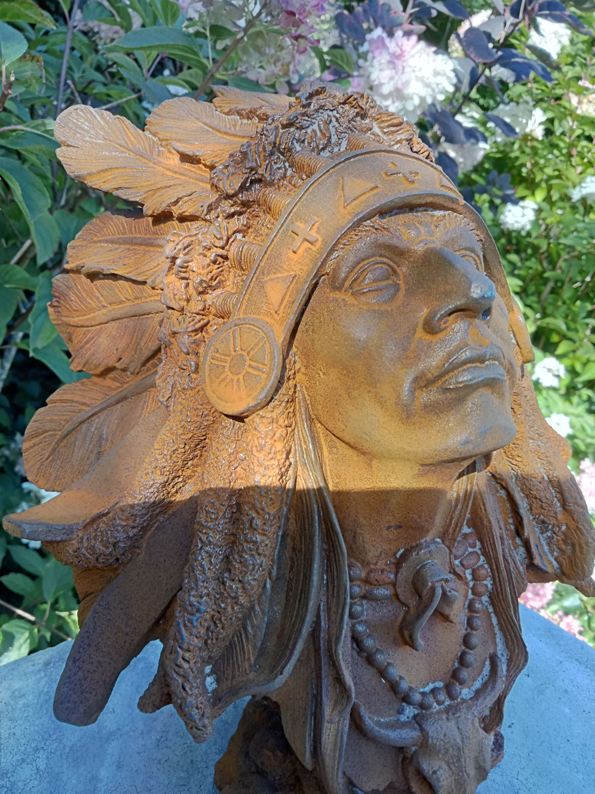 Gietijzeren borstbeeld indiaan. aantal