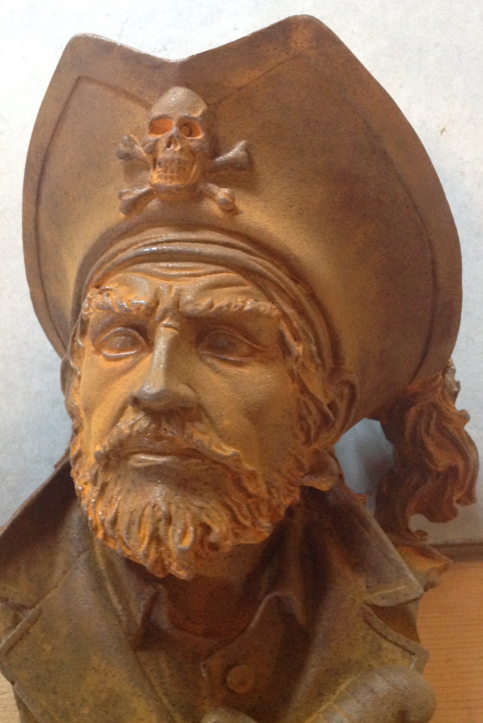 Gietijzeren borstbeeld piraat.