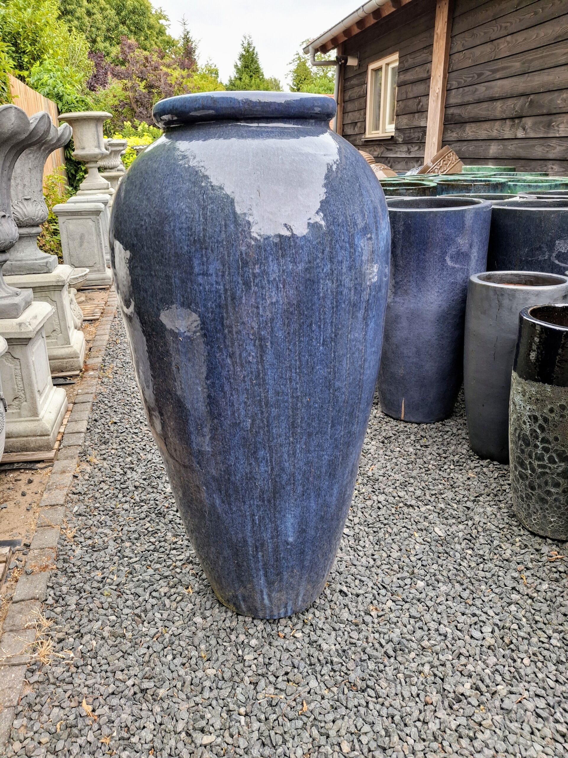 Geglazuurde pot tress bleu hoog 58 cm.