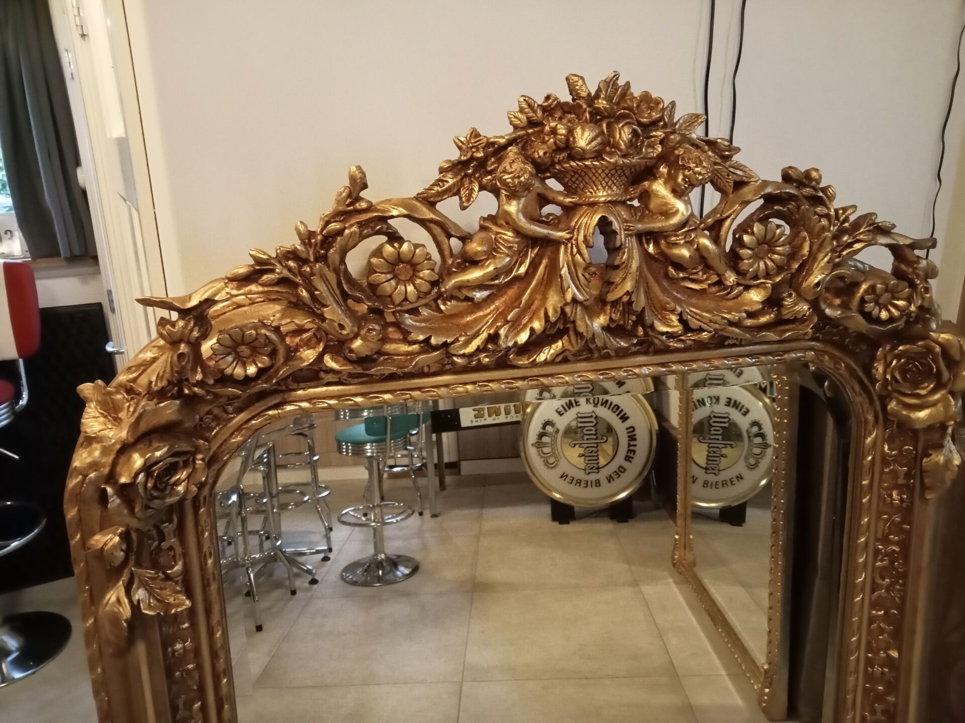 Grote spiegel barok goudkleur.