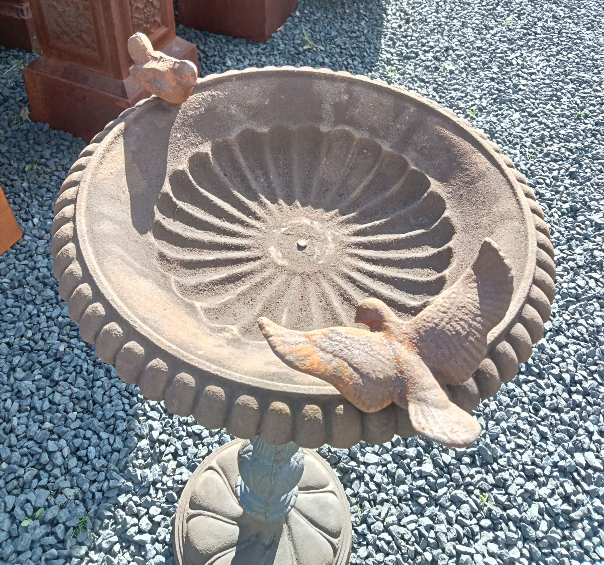 Staande gietijzeren vogelbak.