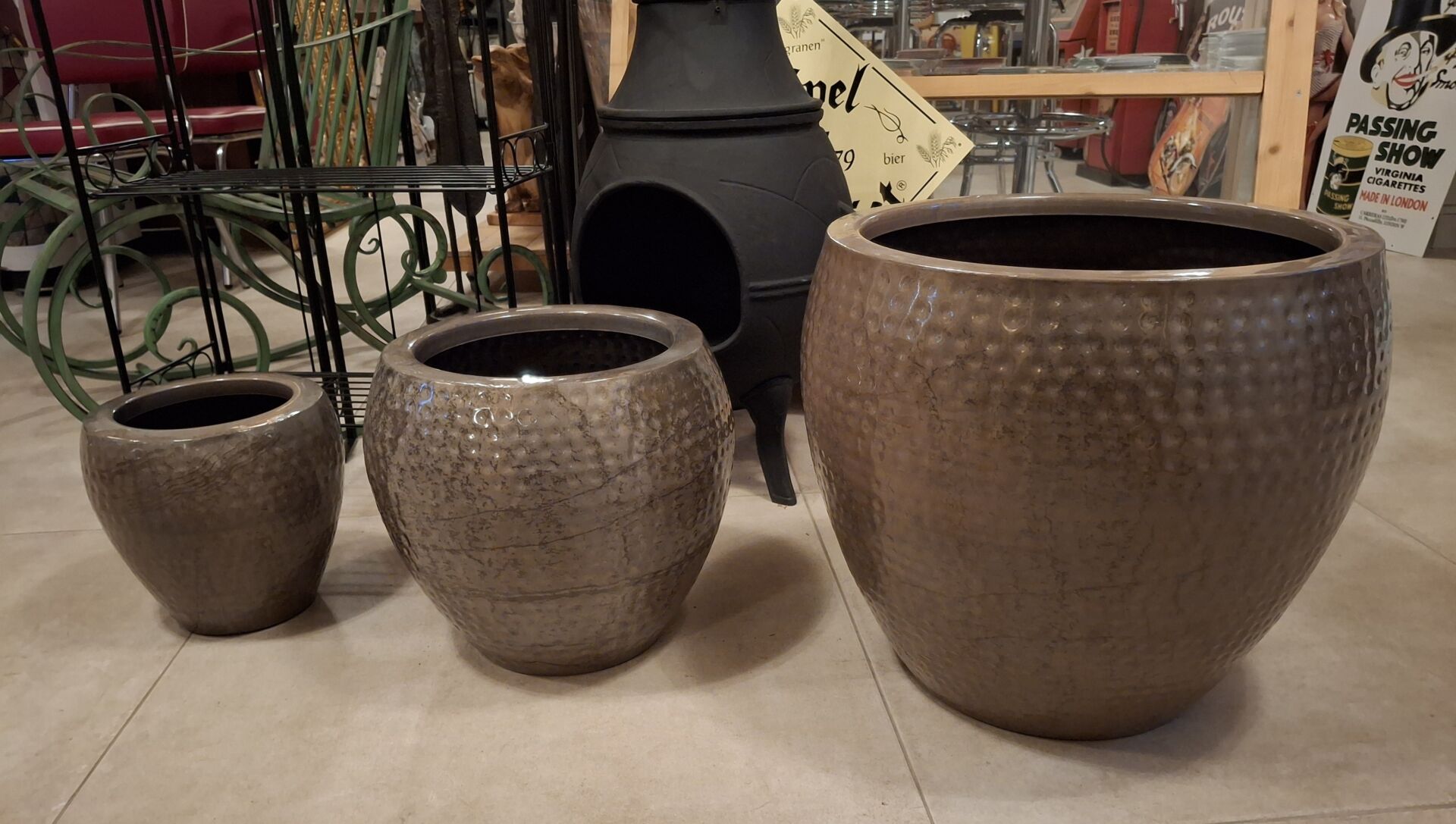 Metalen pot palamos taupe gemoffeld.