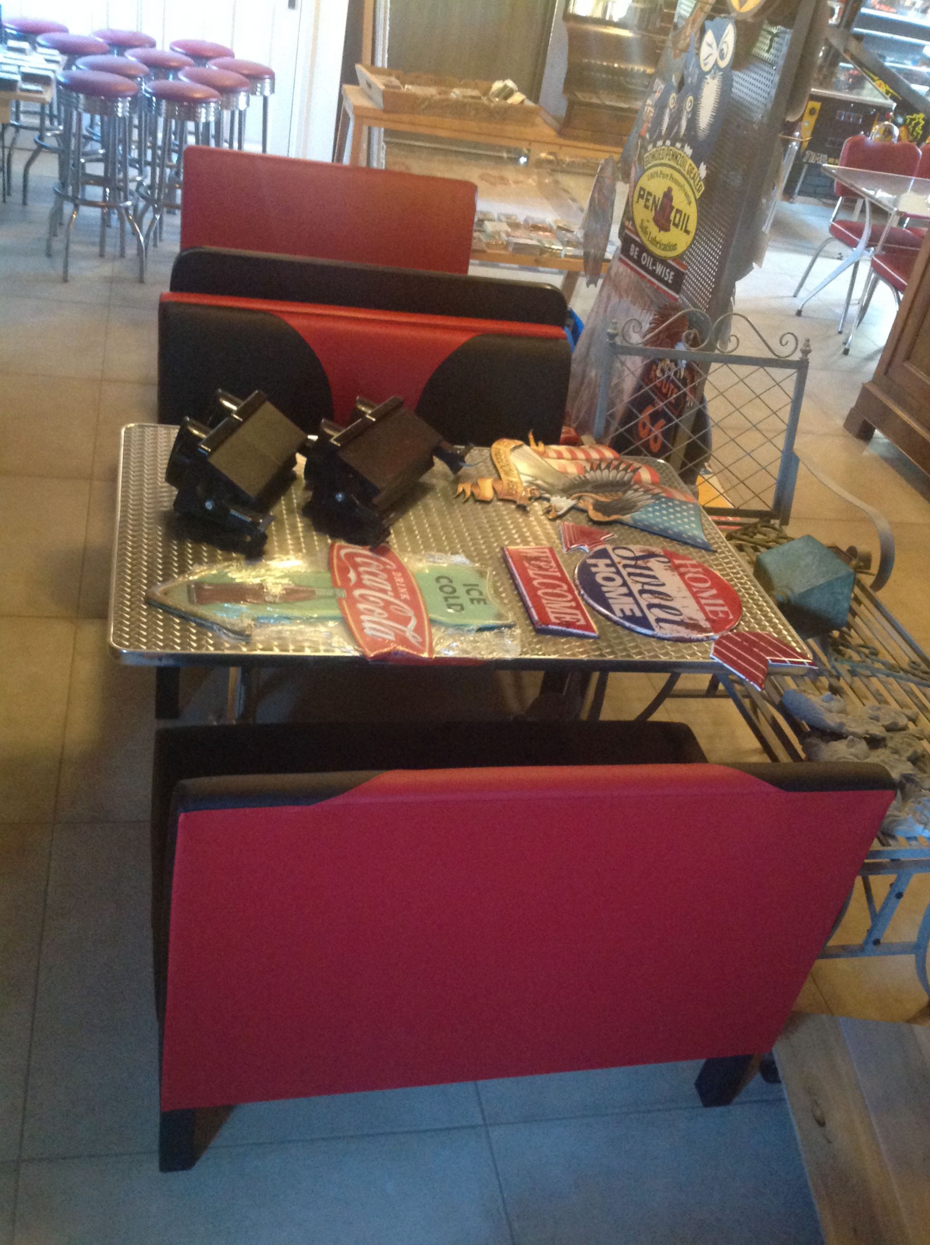 Hele mooie retro diner bankjes zwart met rood.