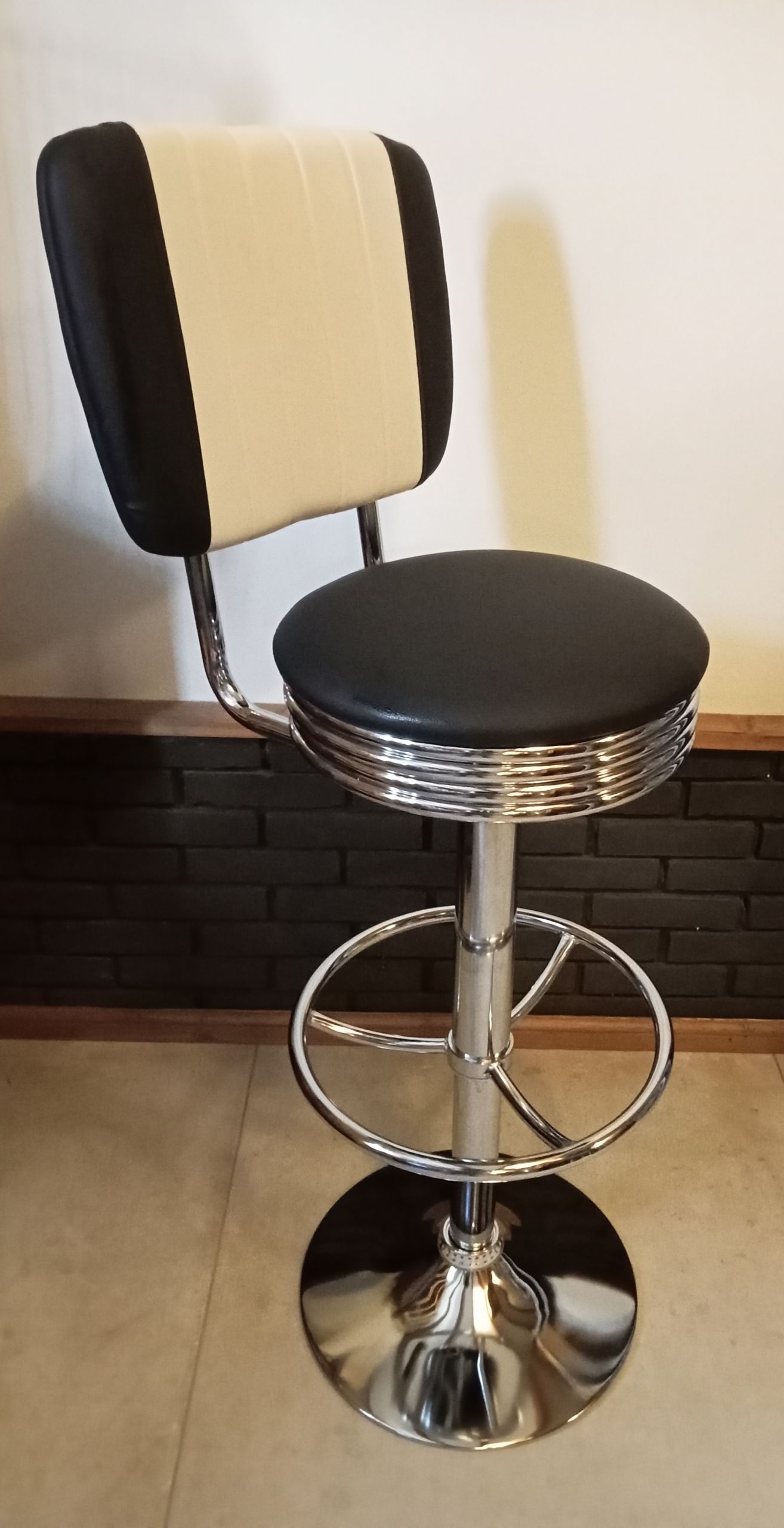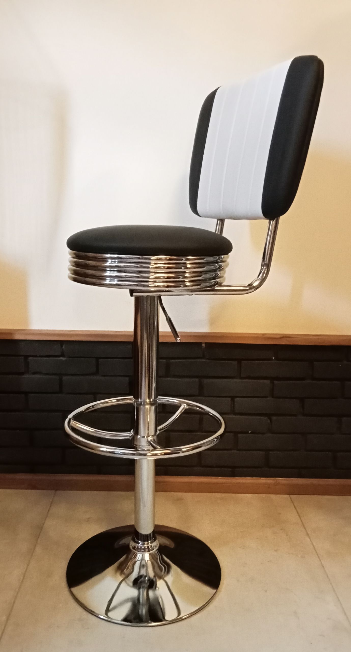 Retro barkruk jaren 60 model met leuning black.