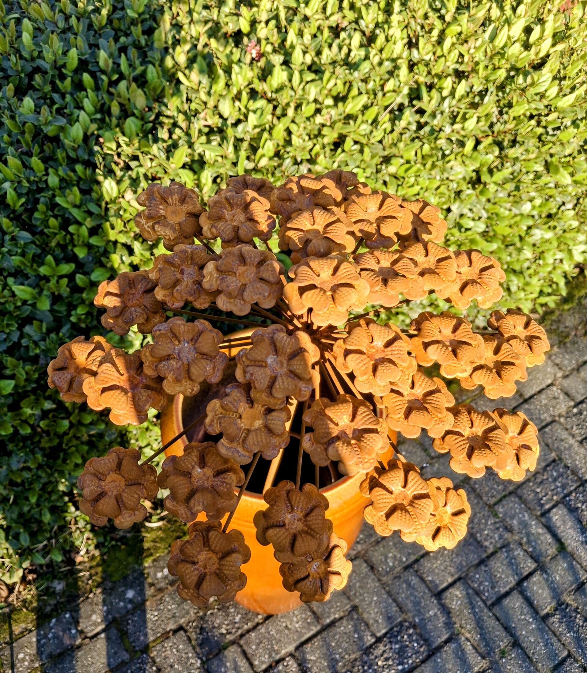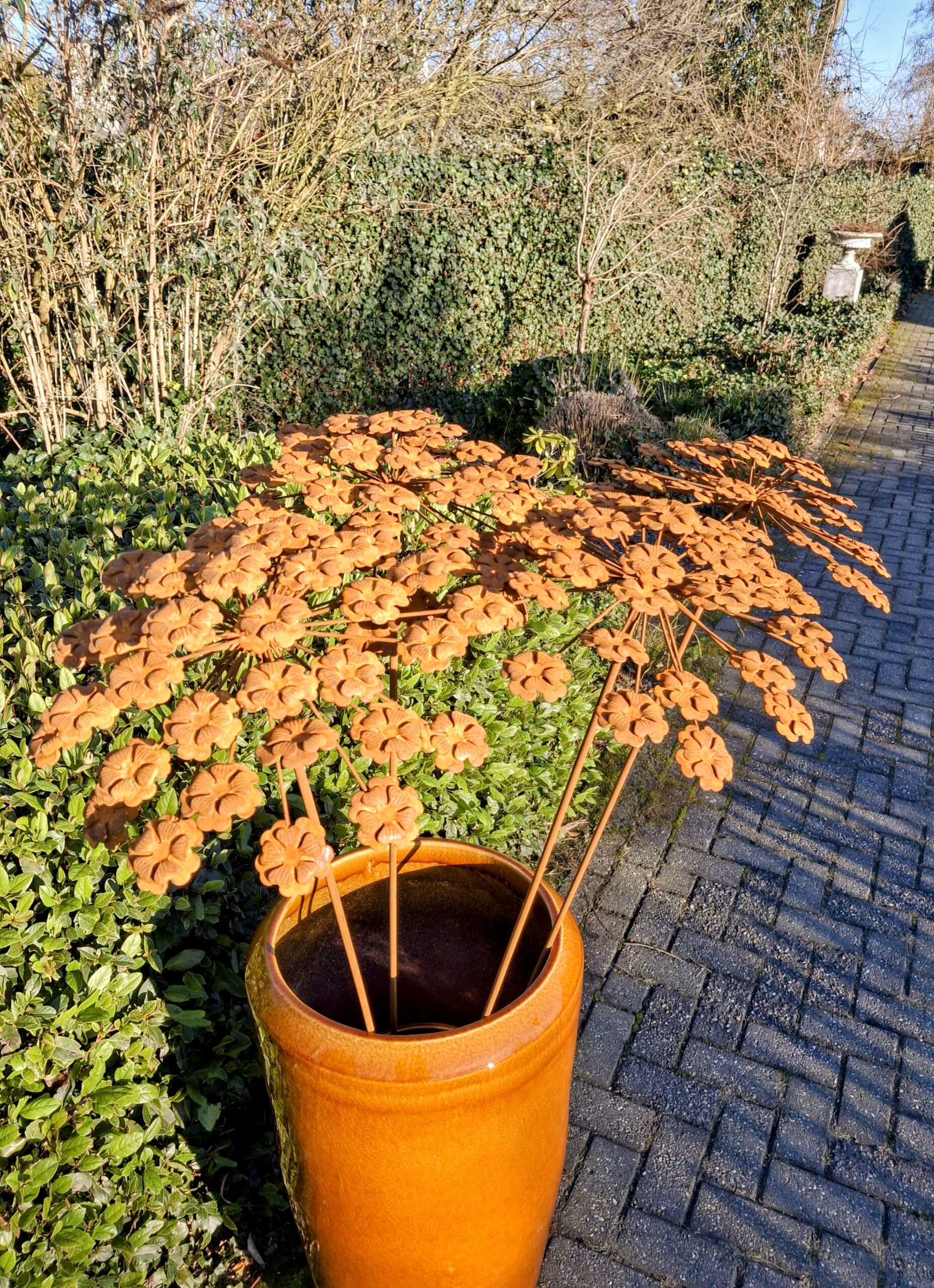 De roest bloem inclusief steker is ongeveer 145cm hoog