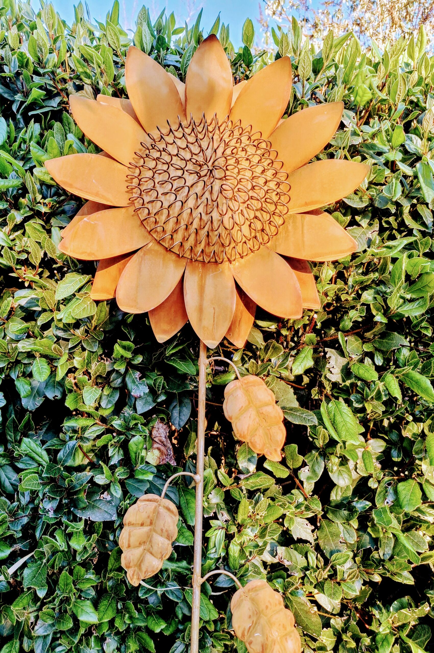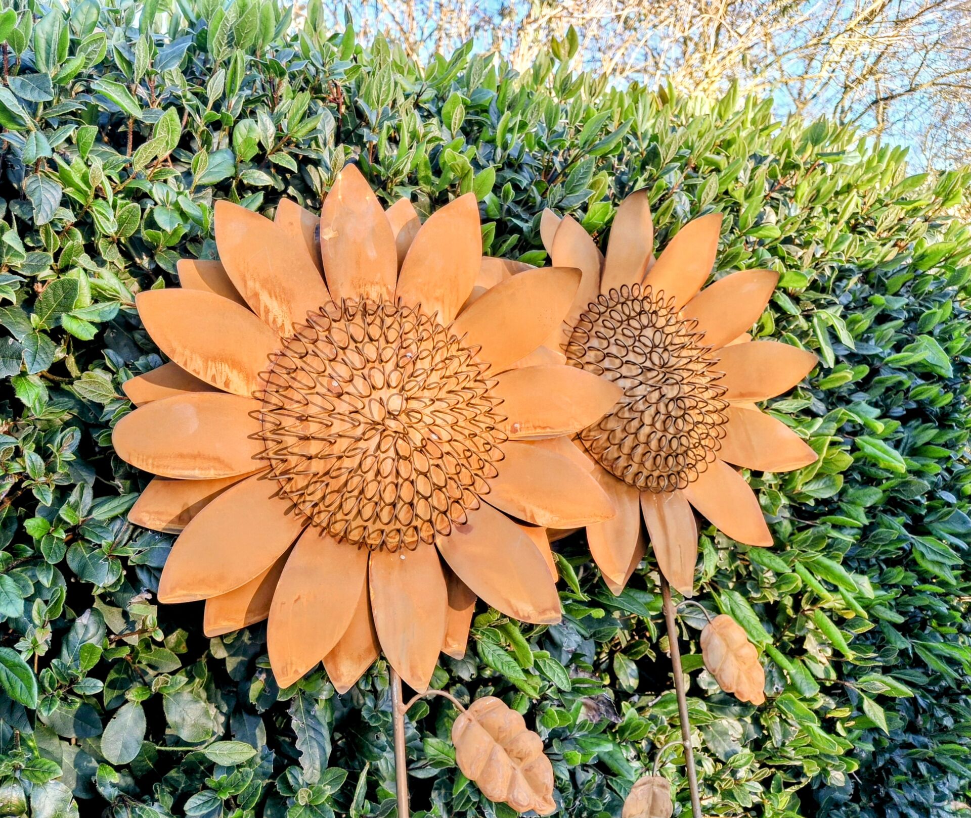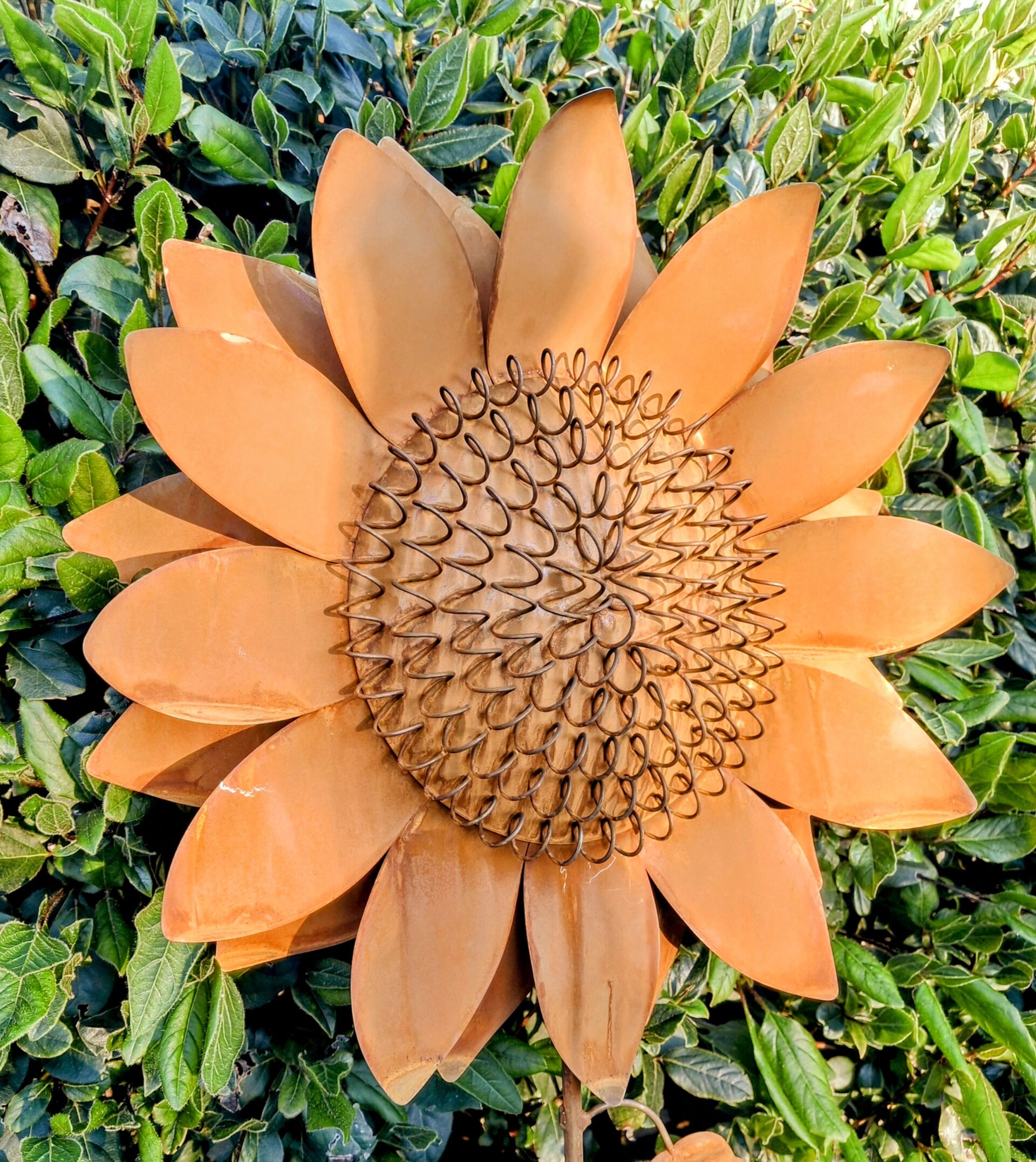 De roest zonnebloem heeft een doorsnede van ongeveer 35 cm.