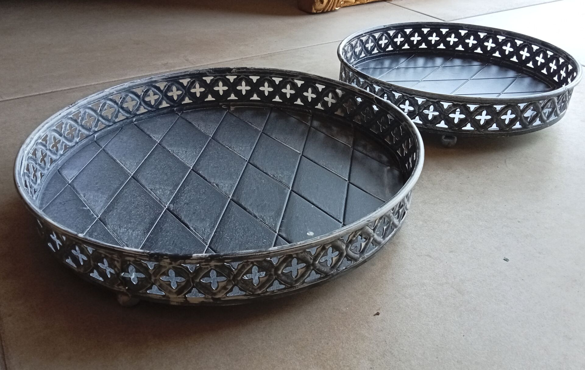 Home / BInnendecoratie / Decoratie / Aanbieding set van 2 zinken schalen.