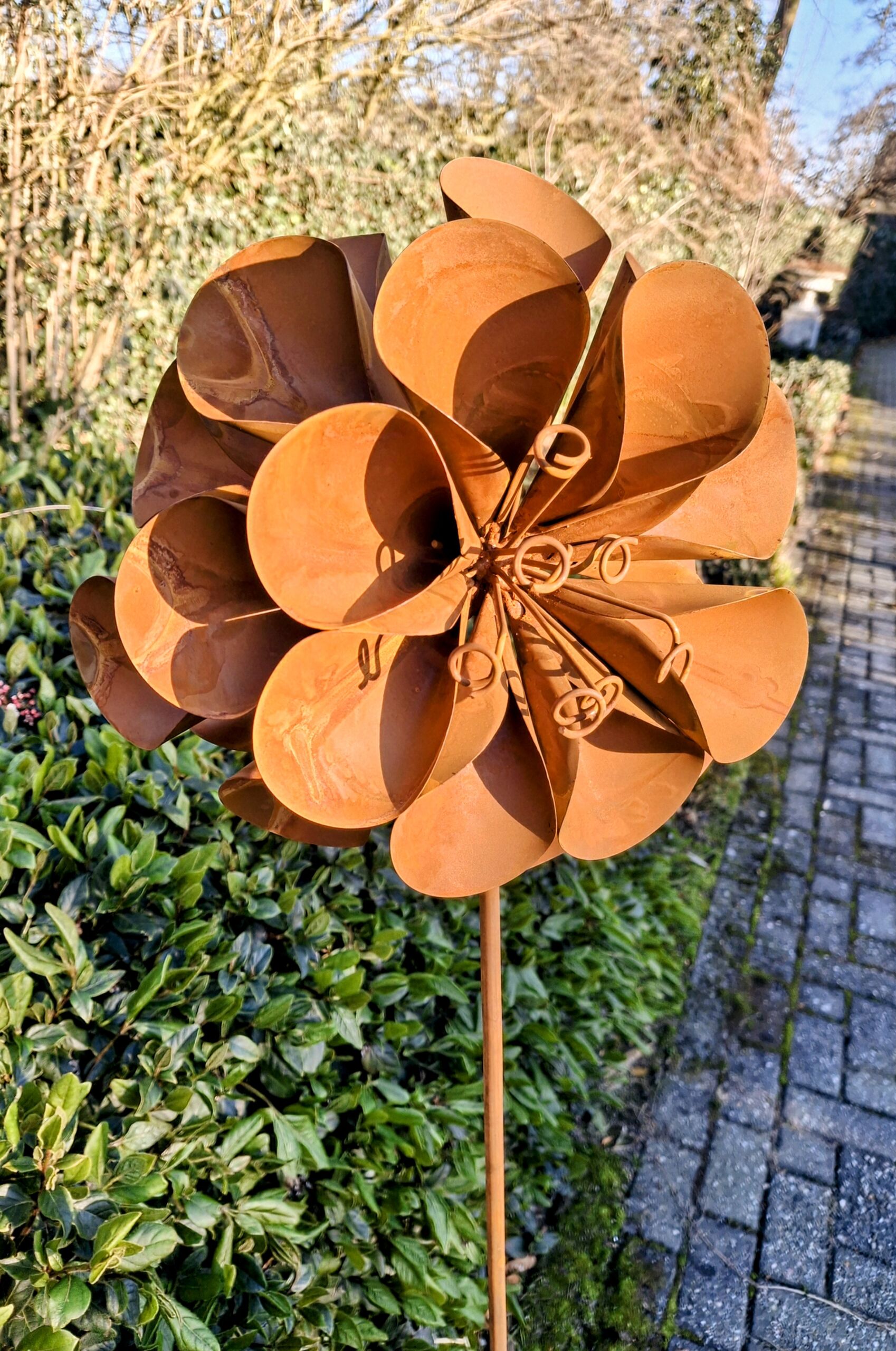 Set van 4 roest bloemen inclusief steker 145 cm hoog