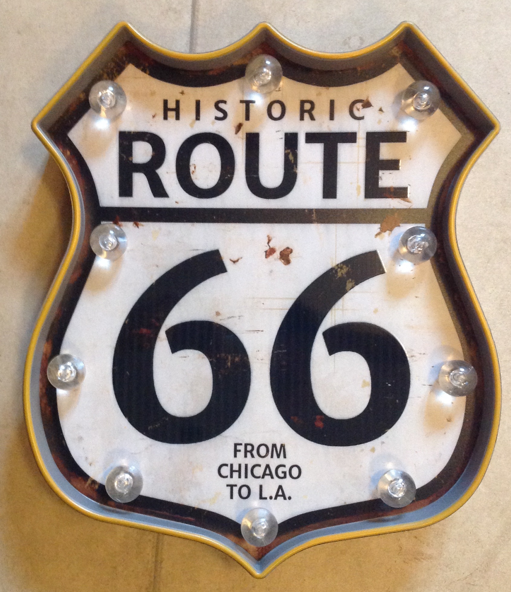 Hele leuke reclame bord route 66 met verlichting.