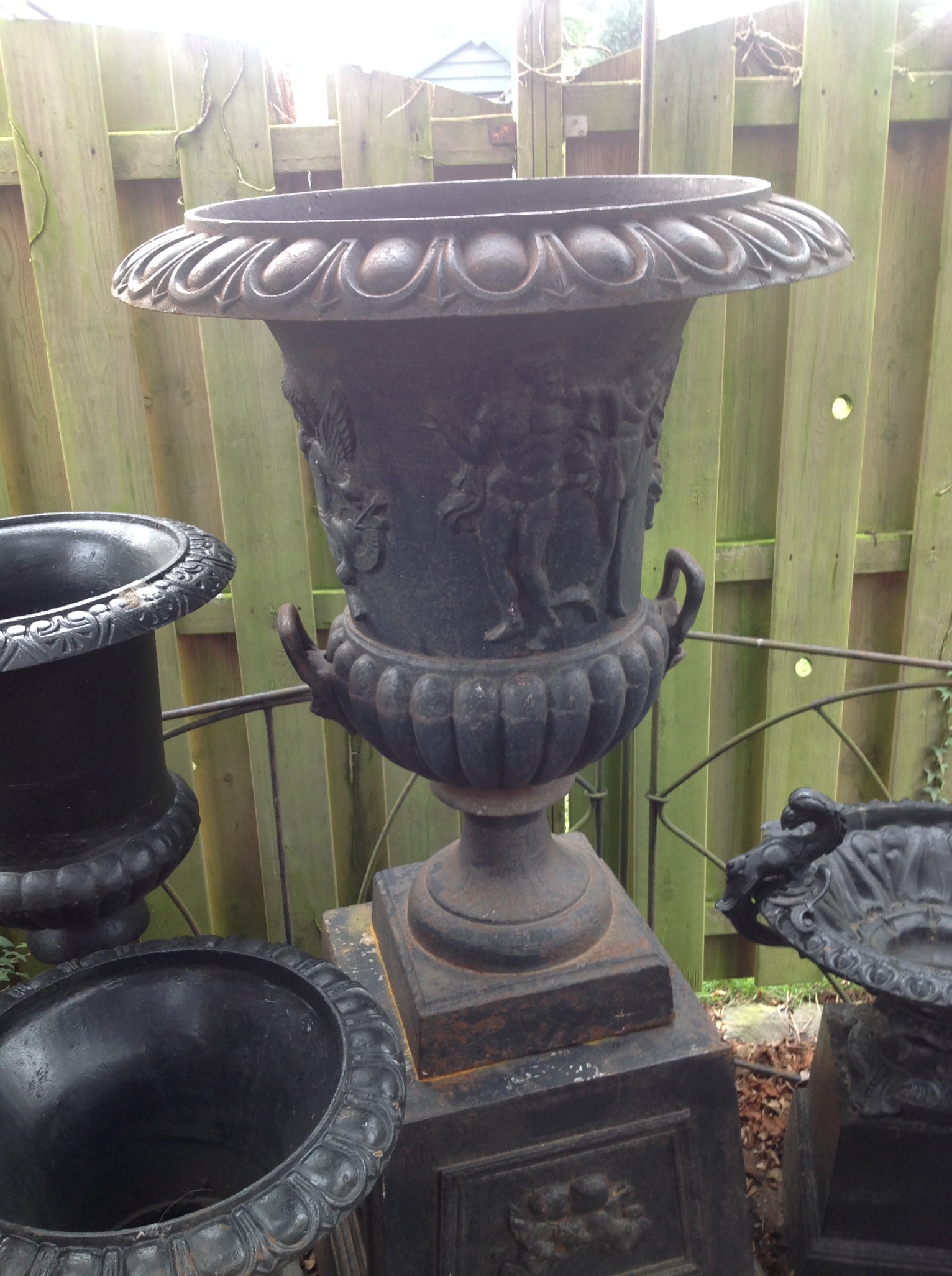 / Zeer grote pot en sokkel gietijzer zwart.